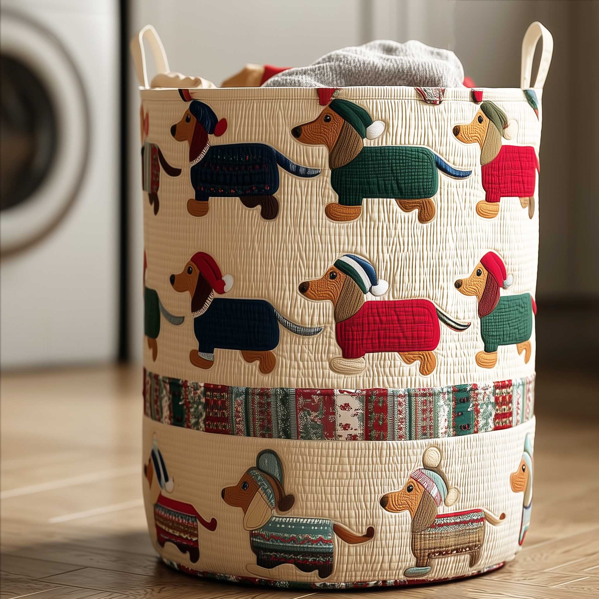 Playful Dachshund Parade Quilted Laundry Basket NCU0HTT096