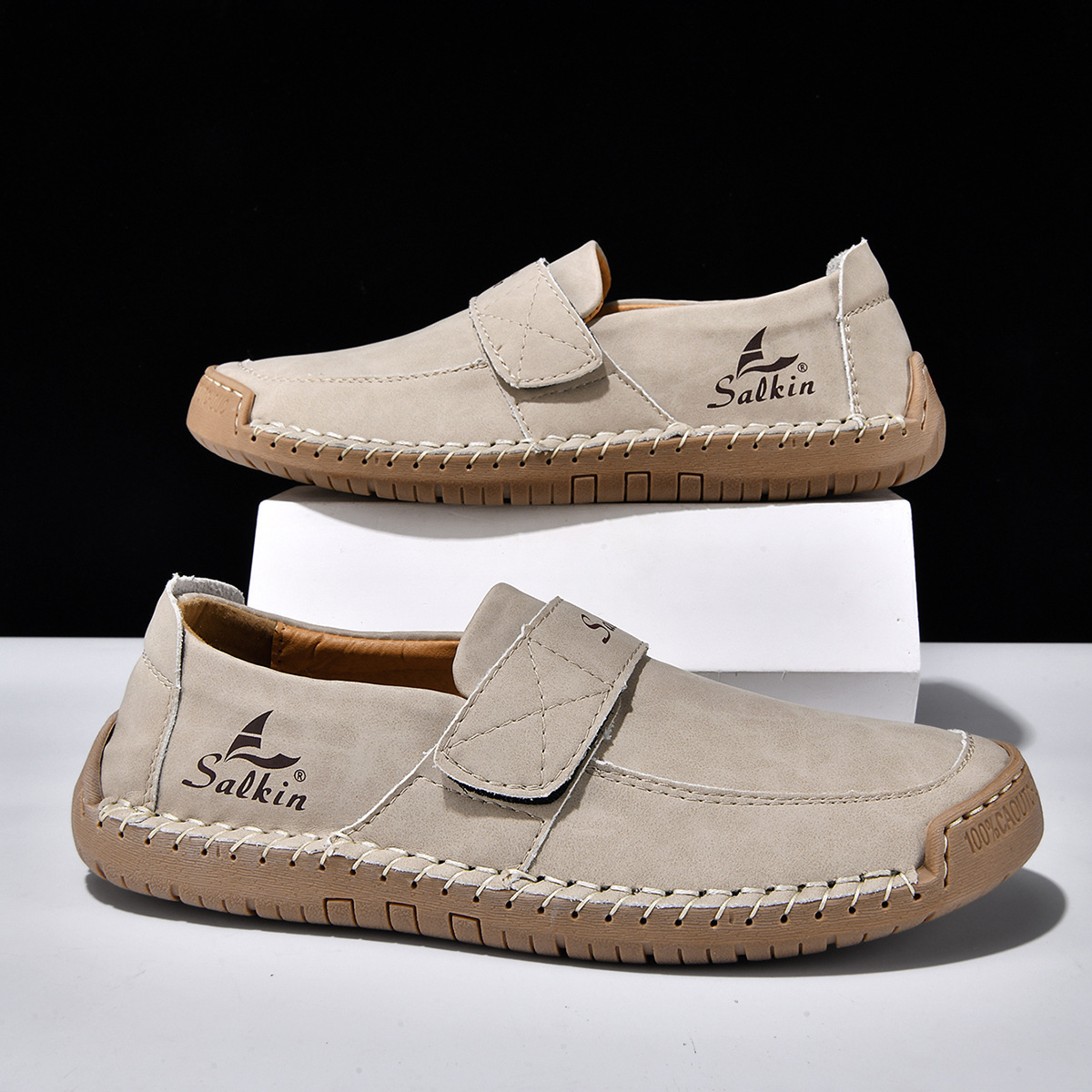 The waterproof cow leather upper makes the casual slip-on shoes lightweight and breathable. The EVA sole provides good cushioning, which absorbs shock while you are walking. The shoes give great support which are suitable for people who need shoes on their feet all day. You can take the shoes as home slippers, work shoes, or travel sneakers.